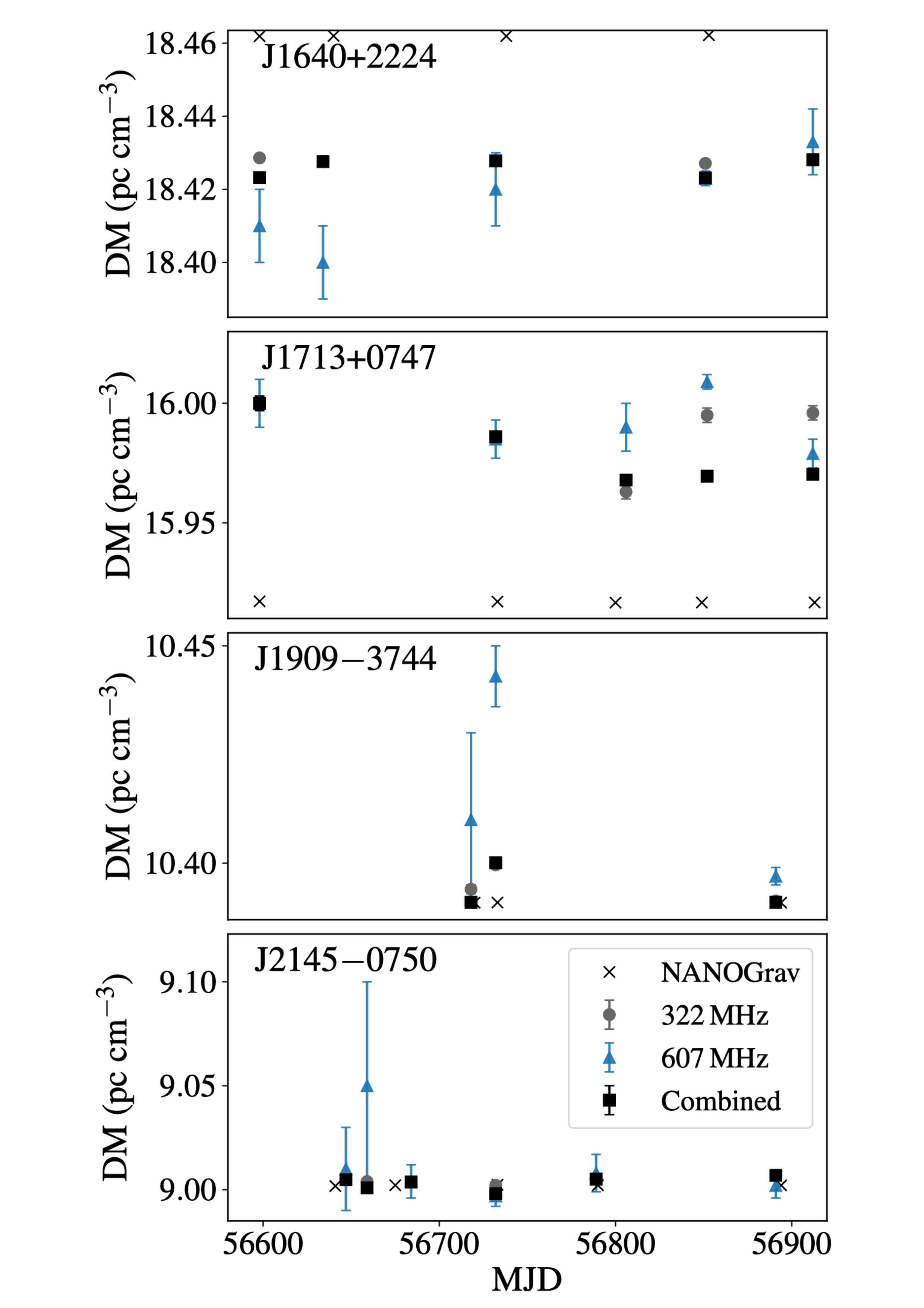 of the four GMRT MSPs and the 14 PTA MSPs reported in the Indian PTA's first data release