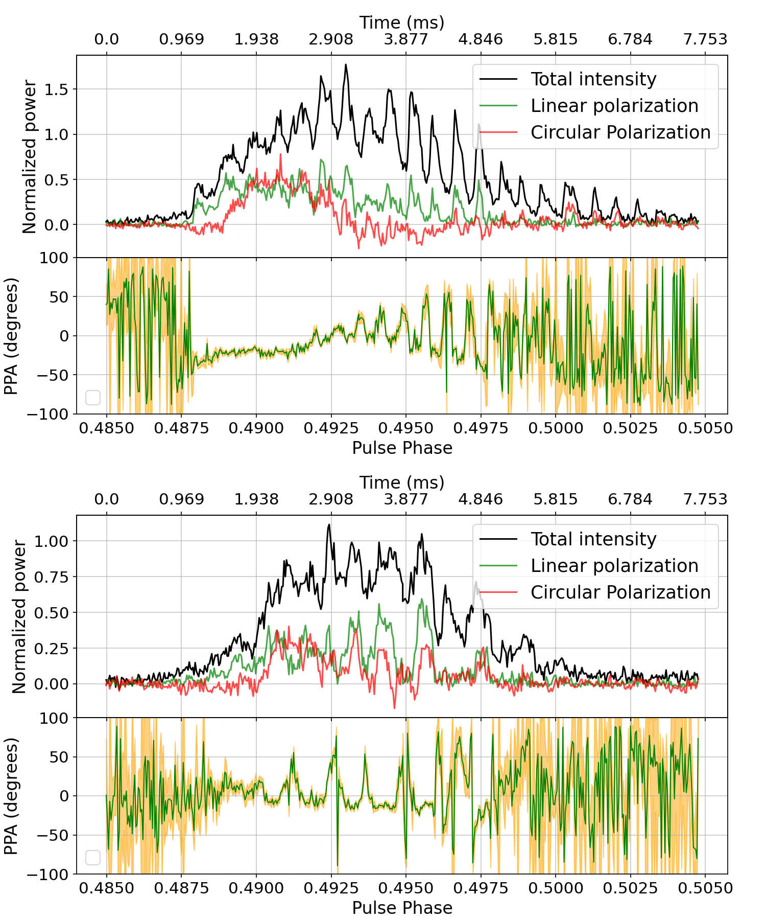 the observed linear polarization on short time and frequency scales, as