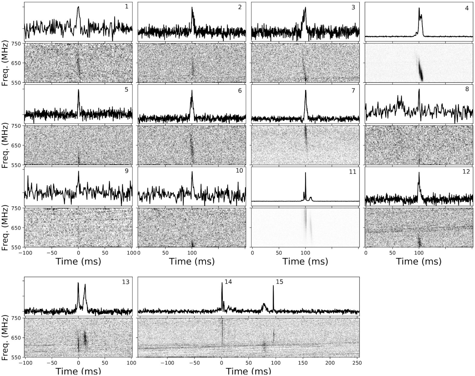 propagation effects. These structures might indicate a phenomenological link with the repeating FRBs, which